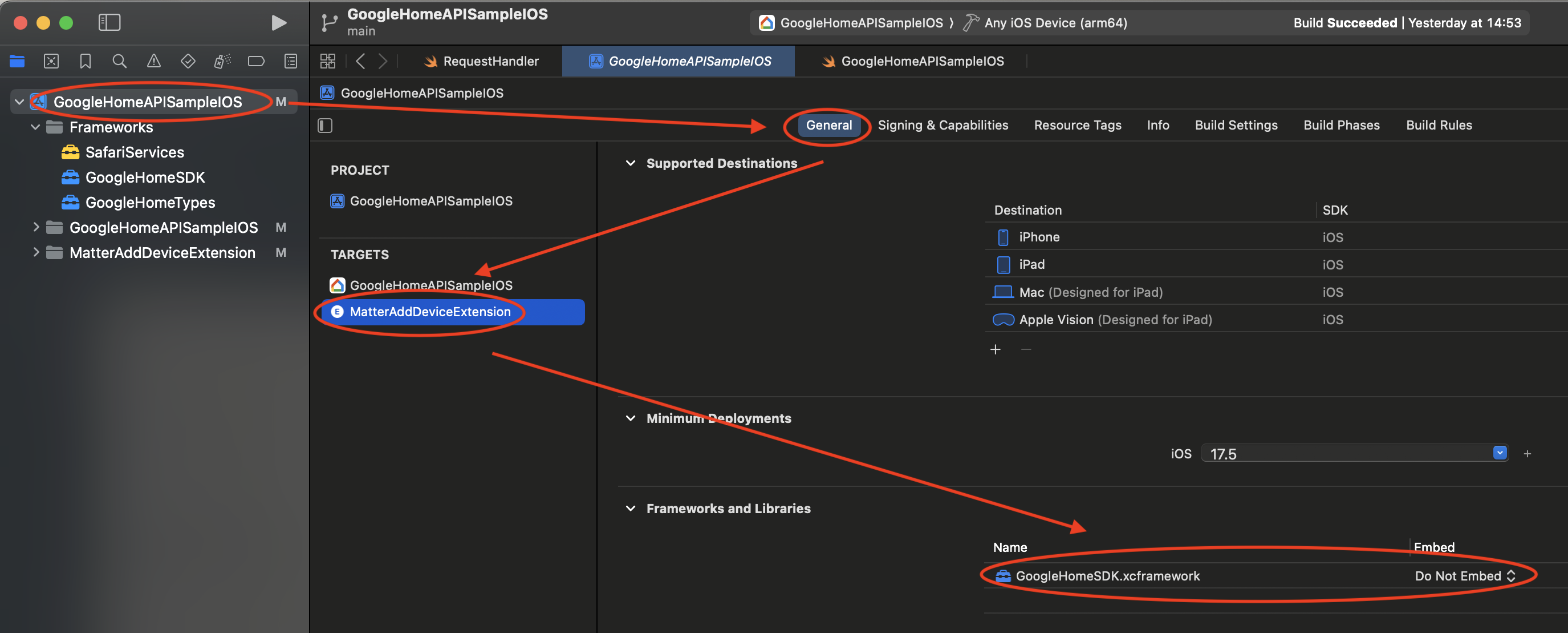 - Перейдите в проект GoogleHomeAPISampleIOS > цель GoogleHomeAPISampleIOS .