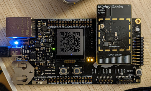 Since the nRF52840 board doesn't have a display, the QR code string is printed in the serial console when it boots up. For example: