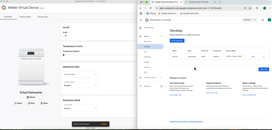 ম্যাটার ভার্চুয়াল ডিভাইস সমর্থনে ডিশওয়াশার এবং রোবোটিক ভ্যাকুয়াম ক্লিনার যোগ করা হয়েছে।