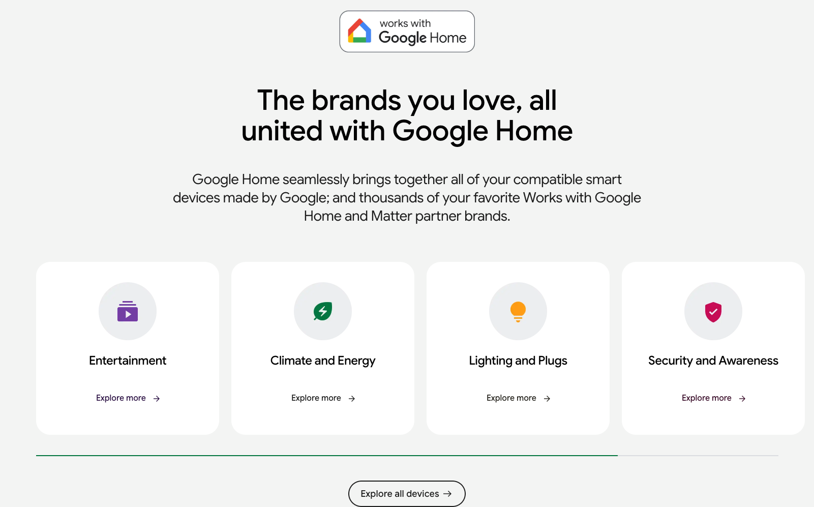 আপনি যদি আপনার ডিভাইসটিকে Google Home ইকোসিস্টেমের সাথে সংহত করে থাকেন, তাহলে আপনার ডিভাইসটি আমাদের Google Home Explore ডিভাইস পৃষ্ঠাগুলিতে প্রদর্শিত হতে পারে। আমরা আপনাকে আমাদের Google হোম সাইটে আপনার পণ্য প্রচার করতে সাহায্য করব৷